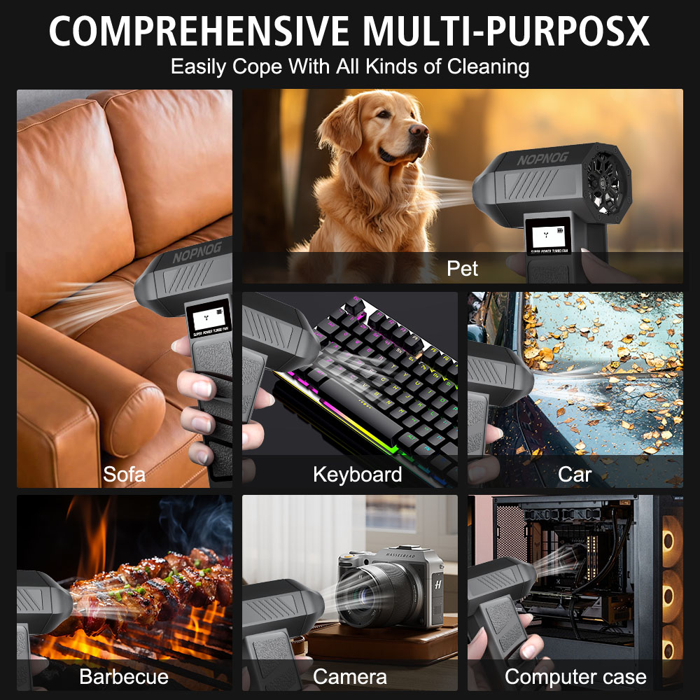Wide Usage:Air cushion blowing and suction, computer equipment cleaning, industrial dust blowing, charcoal burning to support combustion, car blowing and snow blowing, film studio shooting and wind making, drying pets, and many other uses.